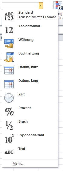 Über den kleinen Pfeilschalter können Sie eine andere Zahlenformatierung wählen.