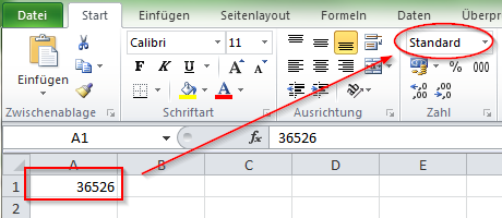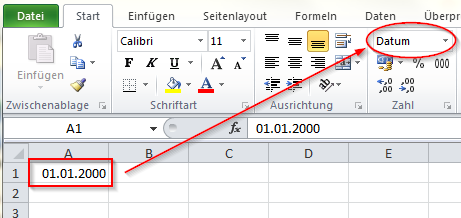 Ein Datum ist für Excel eine Ganzzahl. Die Zeitrechnung beginnt für Excel unter Windows am 00.01.1900 und erhöht sich jeden Tag um 1. Der 01.01.2000 ist somit die Zahl 36.526 bzw. der Tag 36.526 in der Excel-Zeitrechnung. Sie können dies testen, indem Sie ein Datum in eine Zelle eingeben. Die Zelle hat nun das Zahlenformat "Datum". Wenn sie das Format z. B. auf "Standard" ändern, sehen Sie die Zahl, die sich hinter dem eingegebenen Datum verbirgt.